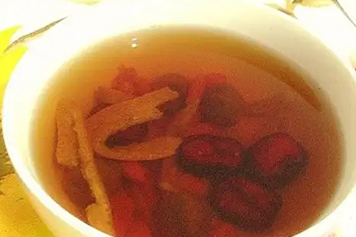 红枣枸杞陈皮泡水喝酸甜适口,可补充水分,刺激唾液分泌,具有生津解渴的功效。