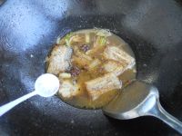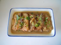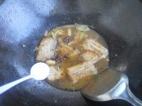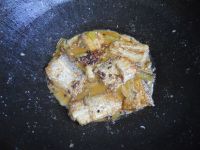 放入煎好的鱼段,(此时蒸气特别大我为了拍出清晰的照片,把火关了,以下图片也是)。