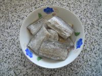 1 将刀鱼段上的水用厨房纸擦干,将刀鱼段轻轻放入锅中再煎,防止油崩溅。