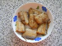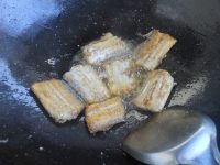 锅里放入适量油,将刀鱼段上的水用厨房纸擦干,将刀鱼段轻轻放入锅中,煎至两面金黄。