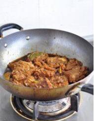 倒入炸好的带鱼,放半汤匙老抽上色。大火煮开,小火焖10分钟。