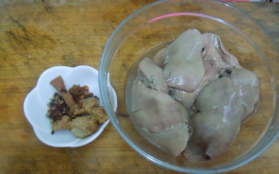 材料:鸭肝500克 八角3颗 桂皮1小根 花椒适量 生姜4片 盐巴适量 料酒 1汤勺