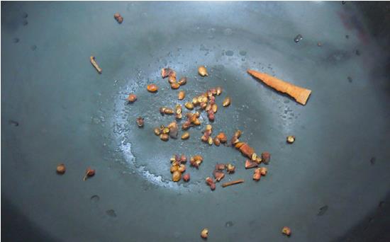 把八角 桂皮 花椒 洗净,放入热好的锅内烤香加入水