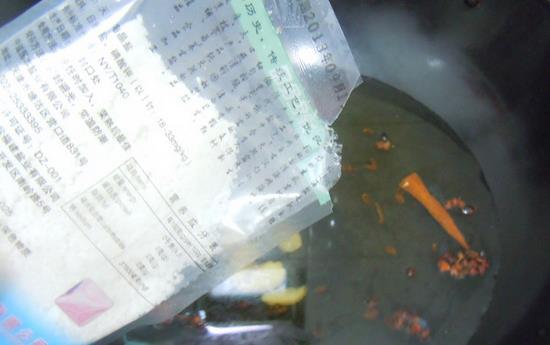 倒入盐巴,待汤汁烧开转倒砂锅内