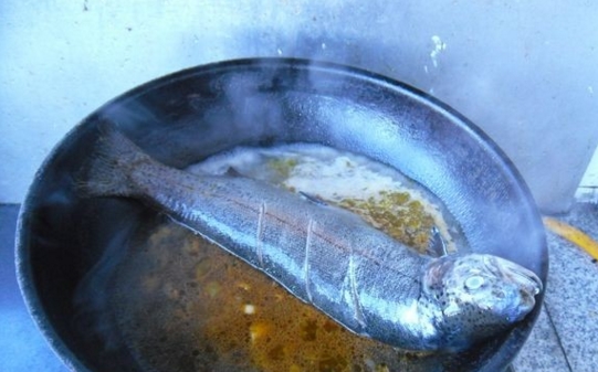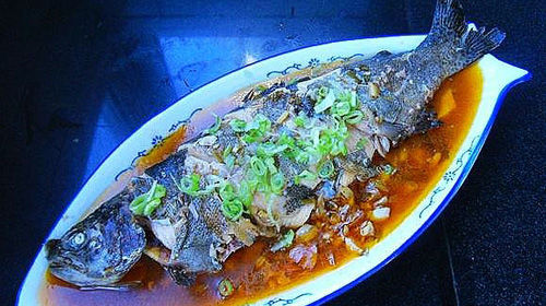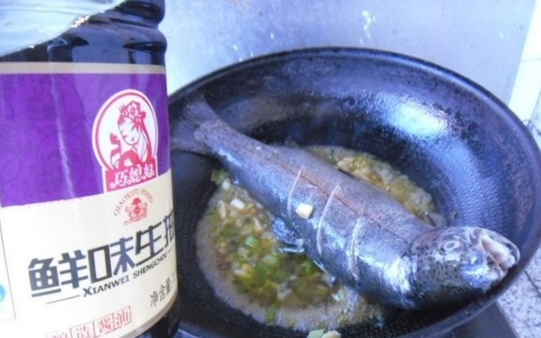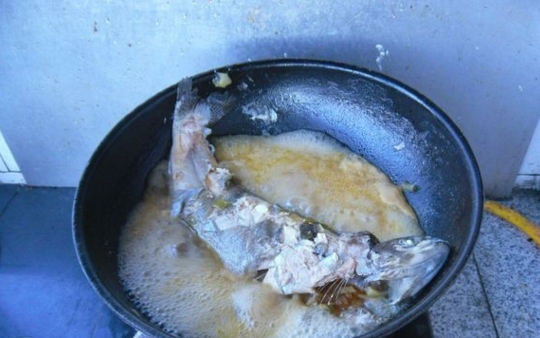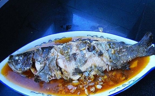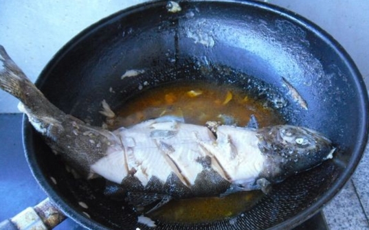 2、烧制整条的鱼翻面时要仔细,最好保持鱼体完整,我做的这条翻面时把鱼片弄破了,不好看。