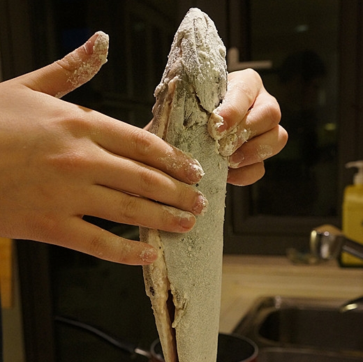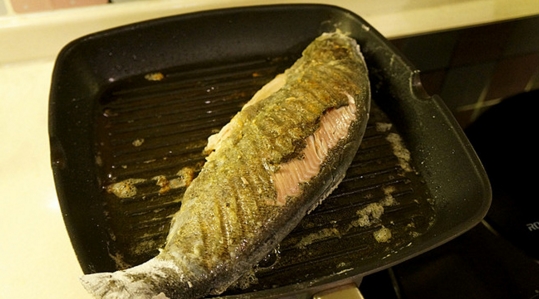 2、鳟鱼肉质细嫩,翻面、去皮时需格外小心,尽量不要破坏鱼肉。