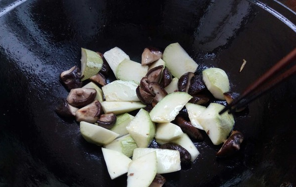 泡好的香菇改刀,西葫芦切滚刀块。