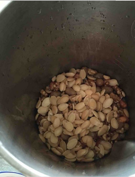 花生提前浸泡4小时,杏仁、核桃提前浸泡2小时