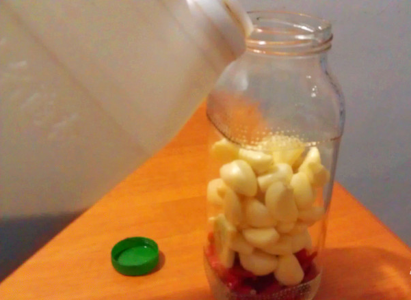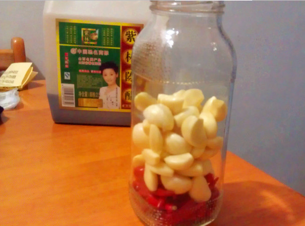 装蒜子的瓶瓶罐罐可先用开水消消毒,再抹干水才放食材