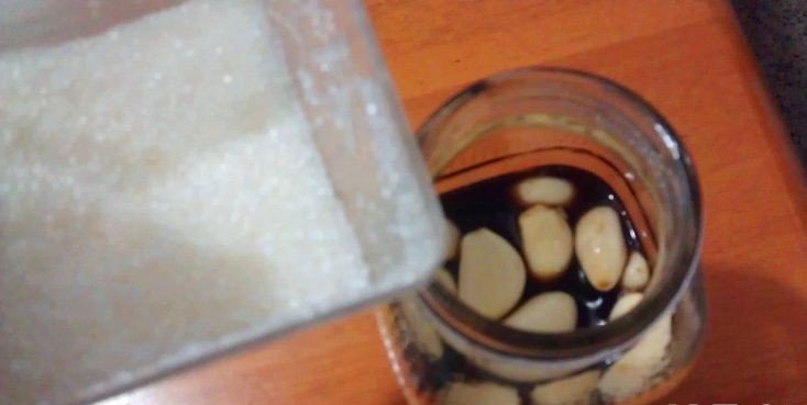 盖好盖子,放在阴凉干燥处,贴上标签,腌至蒜子变成绿色为止就可以了