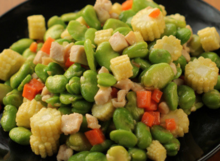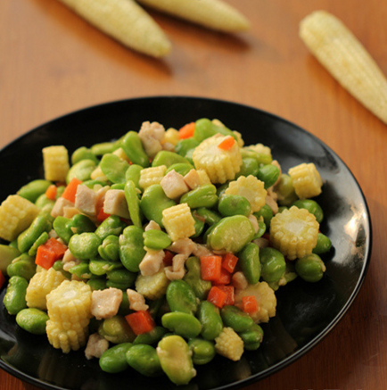 鸡肉的营养就不用说了,是很好的滋补养生食材。这道菜荤素搭配, 色彩丰富, 肯定会吸引孩子们的注意,再吃到口里呢, 蚕豆的粉糯香甜、玉米笋的甘甜鲜嫩,最后加上鸡肉的鲜嫩, 真的味道非常不错哟。 还犹豫什么? 为了自己的孩子,赶紧行动起来,也尝试一下吧。
