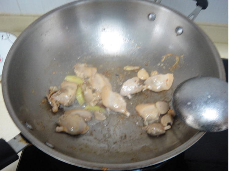 利用底油下入河蚌肉爆炒均匀