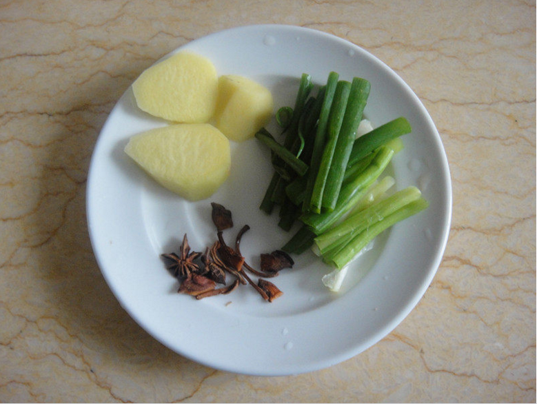 热锅倒入底油加入八角和生姜片爆香