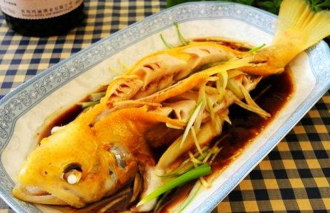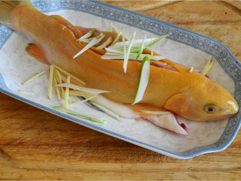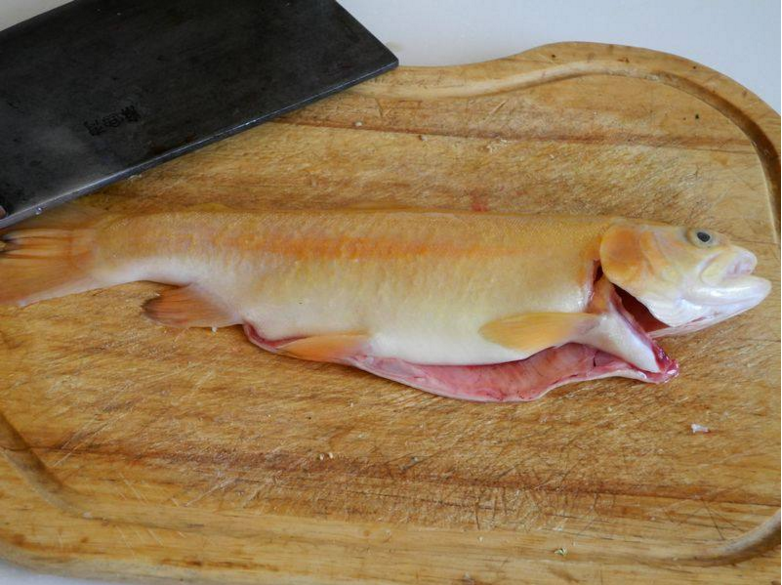 虹鳟长得非常漂亮,金黄色的表皮显得非常尊贵,虹鳟鱼属于冷水鱼。是联合国粮农组织向世界推广的产量高、品质优良的养殖品种之一。虹鳟不仅肌肉发达、肉质细嫩,无肌间刺、可食部分大,而且味道鲜美、营养丰富:每100克可食部中含蛋白质18。6克、热值却低于150卡,是一种高蛋白、高可溶性脂肪和多种维生素、氨基酸,低热值、低胆固醇的优质水产品。 在每100克可食部中,含有ω3 不饱和脂肪酸3克,其能降低血液中的胆固醇含量,有效防止心血管疾病,减轻因风湿和牛皮癣所产生的痛苦。虹鳟还含丰富的脂溶维生素A和D、水溶维生素B12和B6、 EPA(20碳5烯酸)和称为“脑黄金”的 DHA(22碳6烯酸)。食用虹鳟可预防慢性疾病、糖尿病及某些类型癌症。研究表明:每天食用50g虹鳟鱼,患心脏病的概率可降低50%。 胖子采用清蒸的方法来制作这条虹鳟,更能体现鱼的本味。