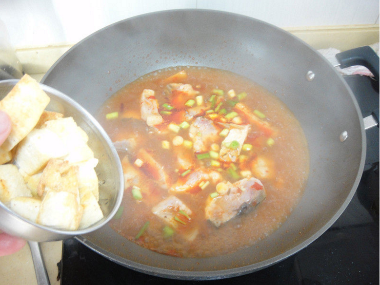 河鱼里我最喜欢的是青鱼,而且要挑大一点的肉质相对来说要好一点,回家后把整条鱼分割,然后按照自己喜欢的可以做N种的鱼菜肴,这道和冻豆腐搭配一起,用红油豆瓣酱调味,鲜香美味,营养丰富,特别适合冬天食用。