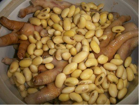 小火慢煮至汤汁变稠变少鸡爪和黄豆酥烂入味为止