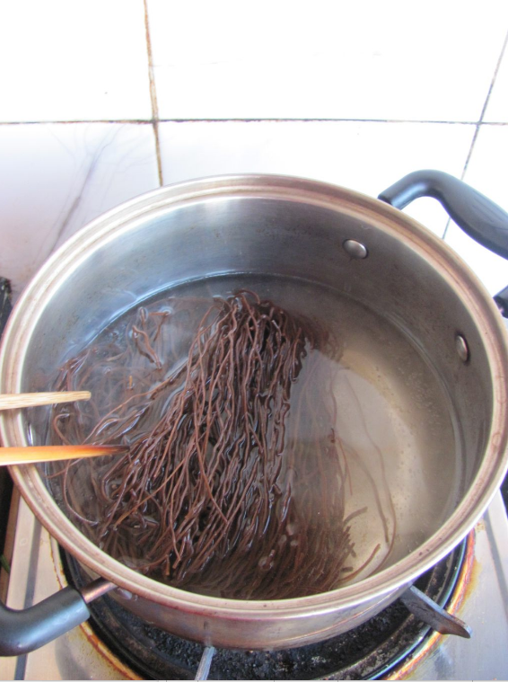 把蕨根粉入锅中煮熟无硬芯。