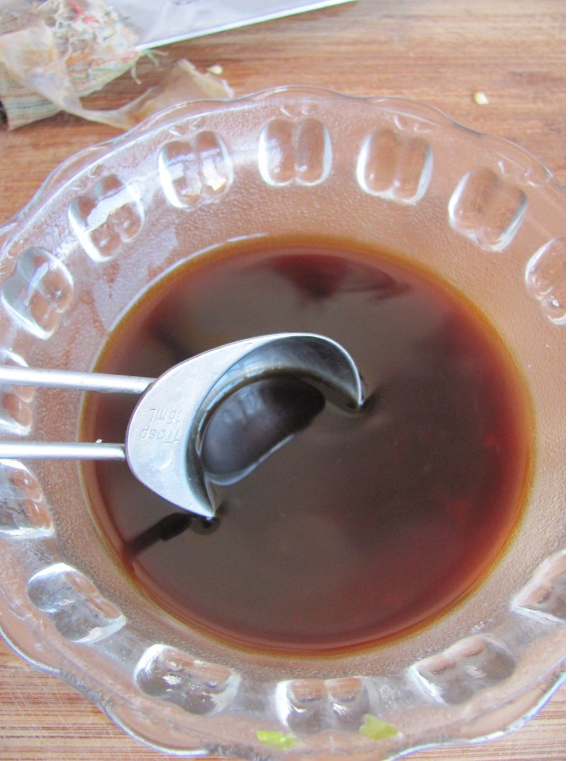 取一个小碗加入生抽,香醋,白糖,盐,少许清水搅拌至白糖溶化。