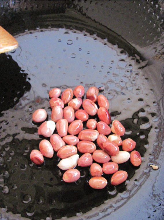 花生米热锅冷油入锅。
