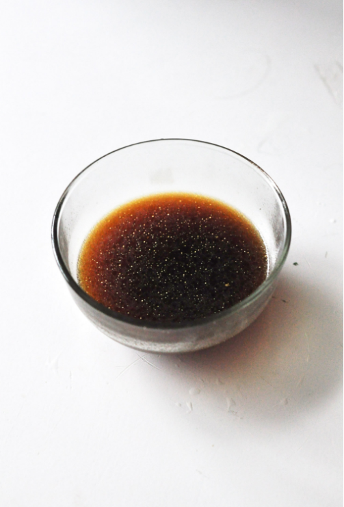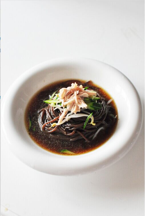 半碗鸡汤加盐,糖,醋,芥末,酱油,鸡精,芝麻油,兑好。