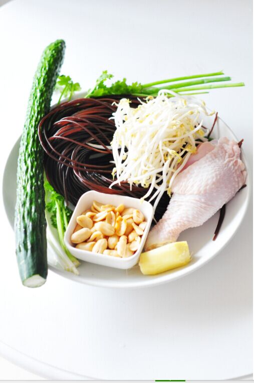 煮鸡汤的时候,另起锅,焯水绿豆芽和黄瓜丝,然后煮蕨根粉,泡好的蕨根粉很好煮。