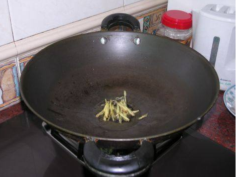 02 油热后,爆香姜丝