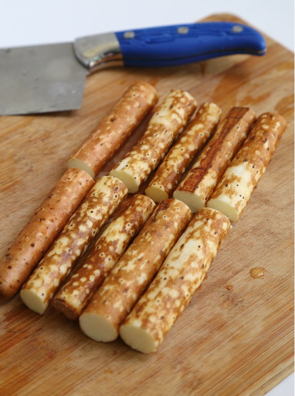 然后清洗干净,切成若干断。