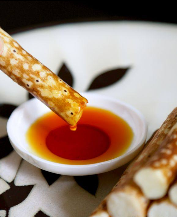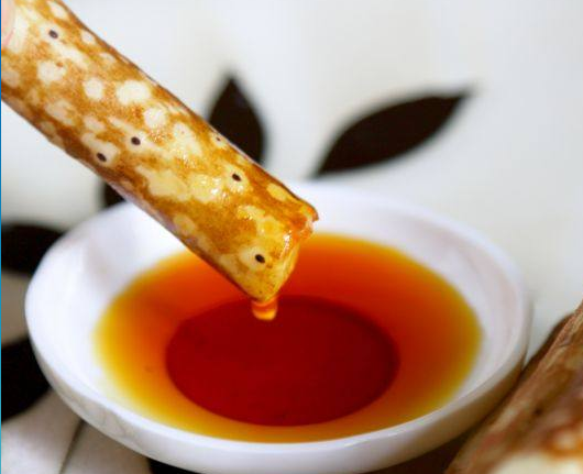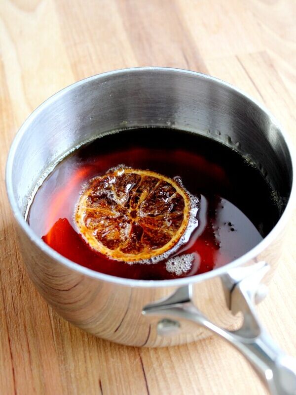 蒸的时候我们可以熬制糖浆,做为沾汁。取一小锅放上糖、水和一片柠檬。注:糖和水的比例是2比1
