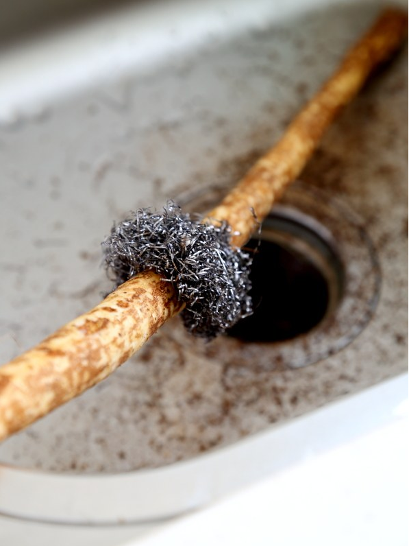 1.处理铁棍山药时,先用钢丝球擦去毛须,然后清洗,这样操作起来简单,也不易使皮肤过敏。