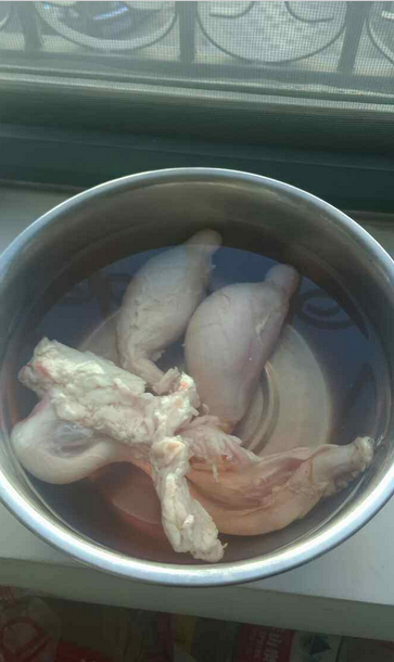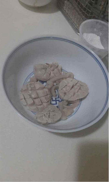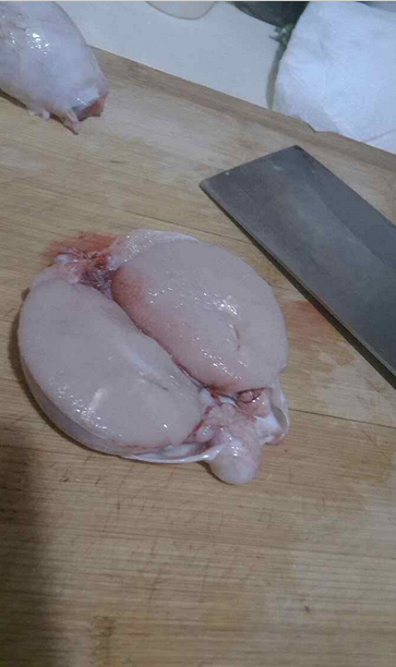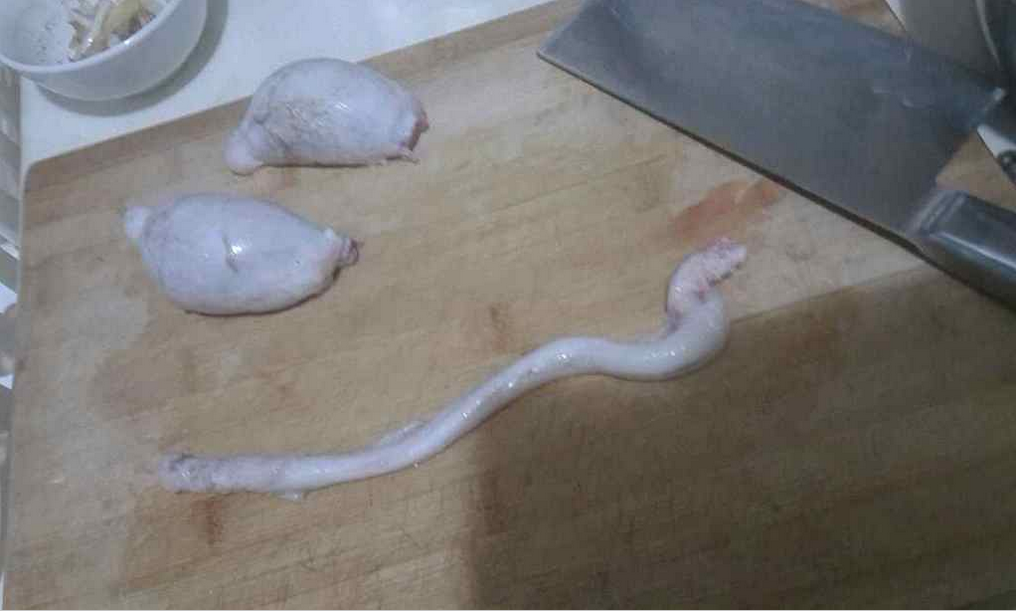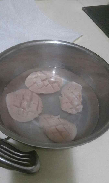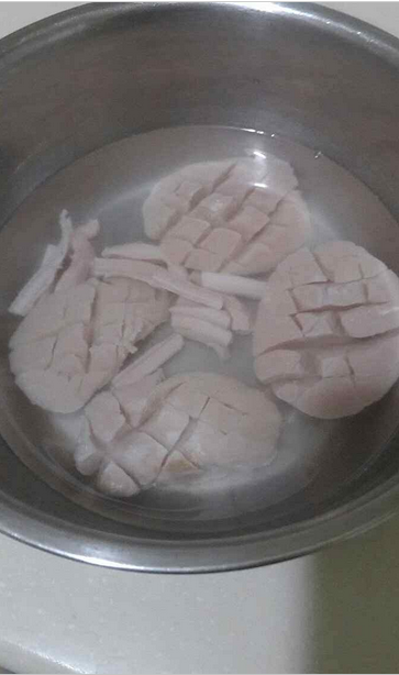 切花刀后泡入清水中,等待处理好羊鞭后,从清水中取出。