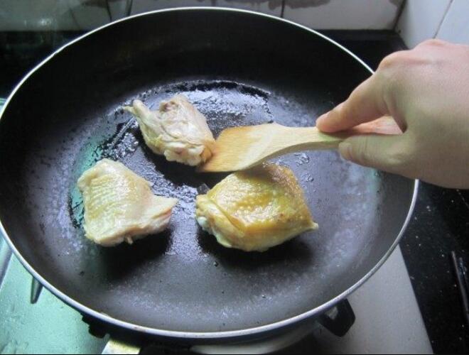 热锅放鸡上腿煎下 (可放少量油煎) 我没放