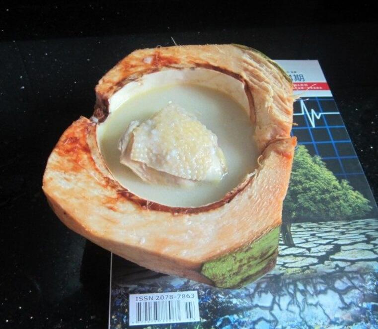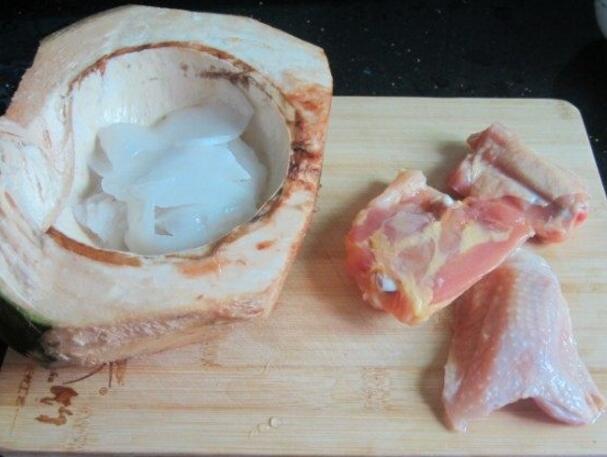 椰青 就是嫩的椰子,椰肉很嫩比老椰子更能生津解热,但没有老椰子香甜,椰汁属凉性润燥,可治肺热等疾病,尤其是炎热的夏天 很多人喜欢喝椰汁椰子水解渴降温。 这个椰青肉也是我家喝完了椰汁,要扔掉的,我觉得很可惜又拿回来取椰肉炖鸡,炖出来的鸡肉嫩滑,汤汁香甜美味 广东11月都还象夏天 这几天虽然有冷空气,但现在还穿短袖。广州更是一年四季都有椰青卖。