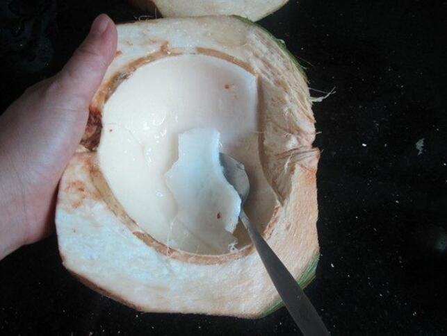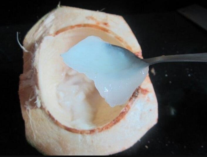 半透明状的椰青肉很嫩 勺子一刮就下来了