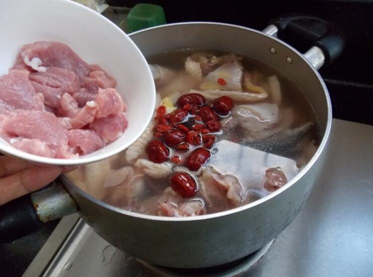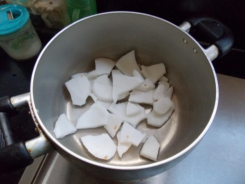 加入椰青汁;(可以多买点椰青汁,这样不用再加水,炖出来的汤水更清甜)
