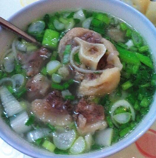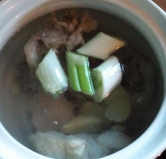 葱,香菜切碎放入大碗中,汤炖煮好后加入到碗中,加入盐即可。