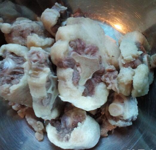 牛尾焯水后洗净。