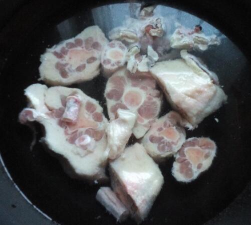 牛尾洗净焯水。