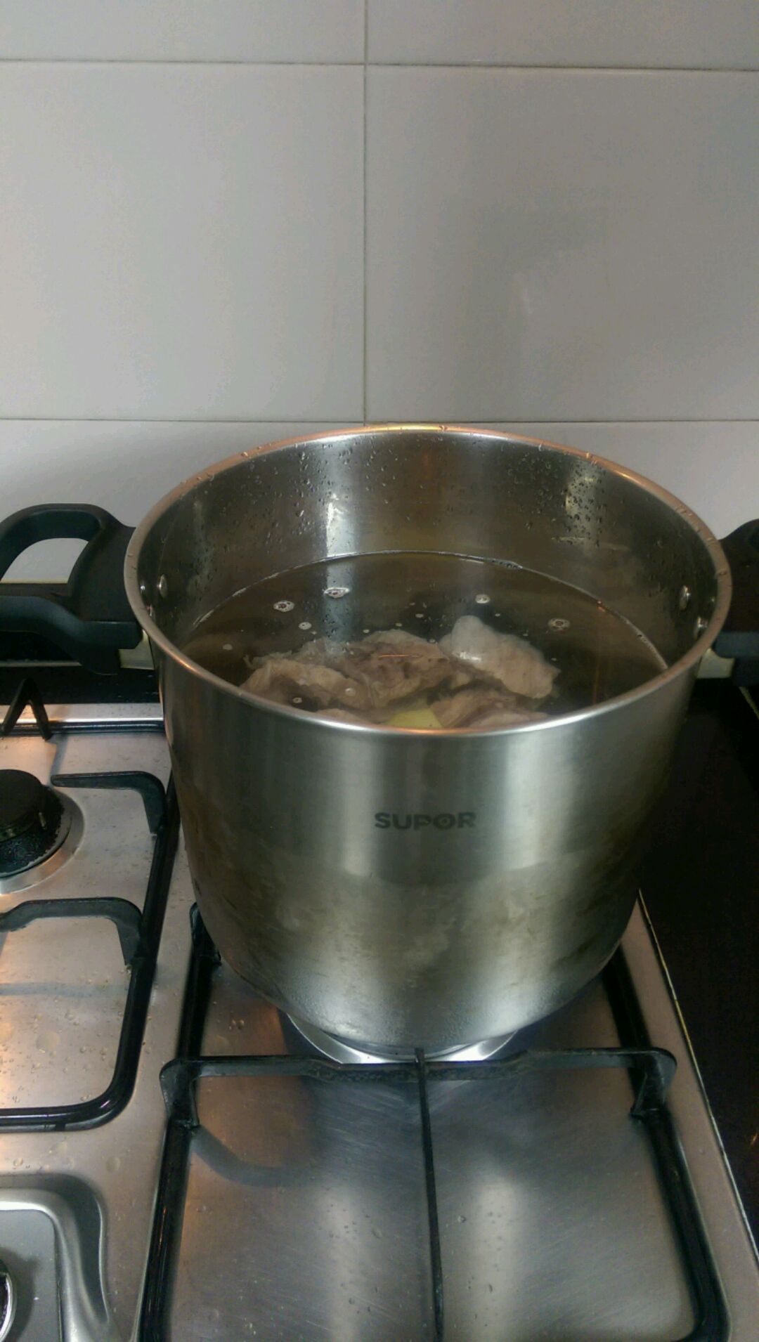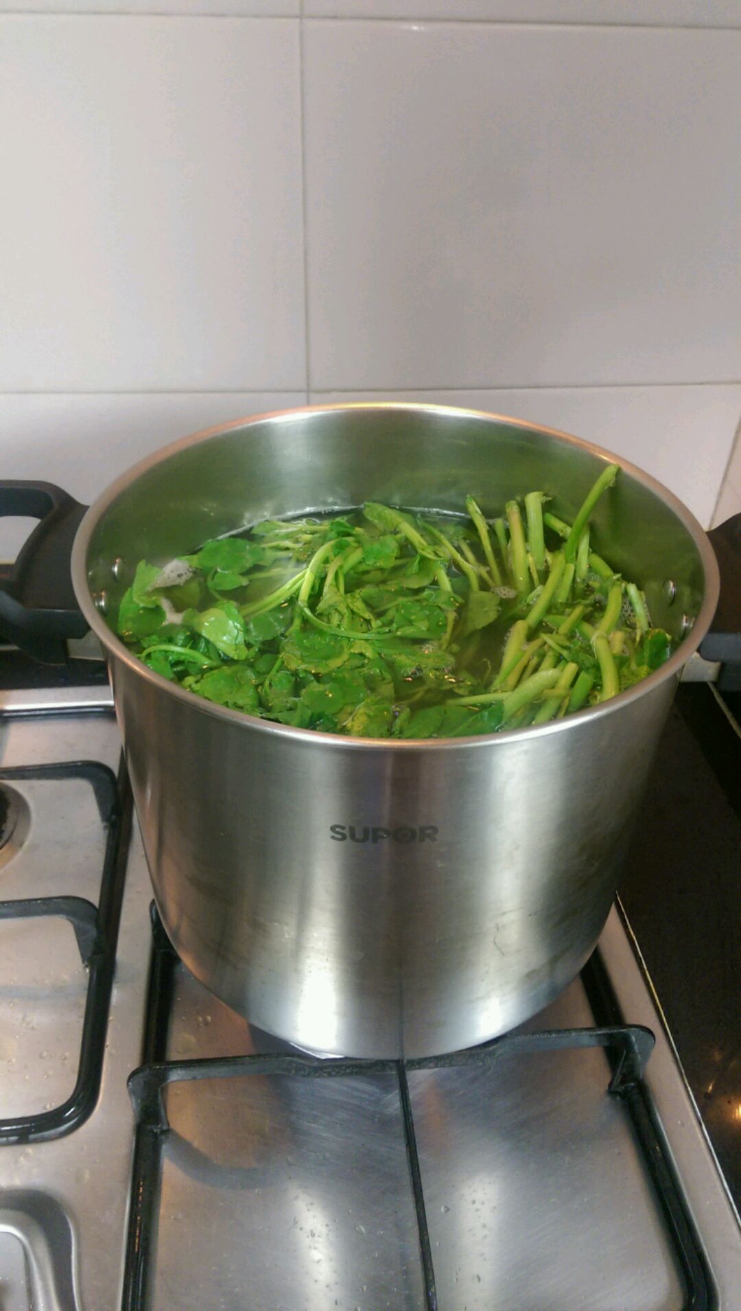 锅里滚了十五分钟左右就下西洋菜,盖盖转小火,煲差不多一个半小时,加盐调味,足矣。